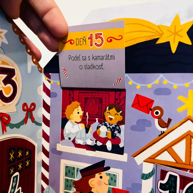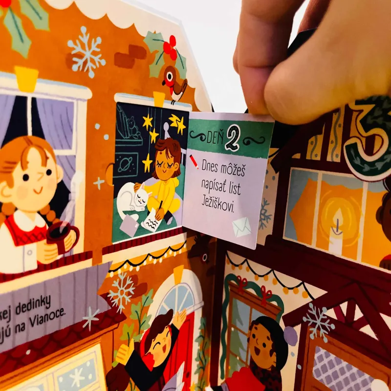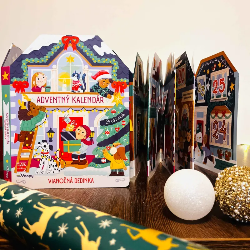 Adventný kalendár - Vianočná dedinka vo forme leporela spríjemní deťom čakanie na Vianoce tým, že im každý deň ponúkne novú úlohu alebo výzvu, ktorá ich zvedie do sveta vianočných príprav a zvykov. Naučíš sa nejakú vianočnú pesničku? Dnes môžeš pomôcť ozdobiť vianočný stromček. Pozveš kamarátov zahrať sa do parku, na dvor či u vás doma? Toto sú len niektoré z milých výziev či úloh, ktoré deti každý deň objavia v adventnom kalendári.