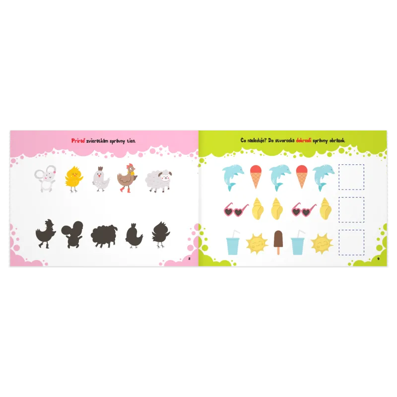 Ročné obdobia – pracovný zošit obsahuje rozmanité úlohy, ktoré sú tematicky prispôsobené ročným obdobiam. Na jar budú počítať veľkonočné vajíčka, v lete sa vyberú na turistický výlet, v jeseni priradia správne tiene k listom a v zime pomôžu dievčatku nájsť cestičku k vianočnému stromčeku. To zďaleka nie je všetko! Zošit ponúka množstvo úloh zameraných na vyfarbovanie, jednoduché počítanie, spájanie prerušovaných čiar i bodov, labyrinty, hľadanie rozdielov či dokresľovanie obrázkov.