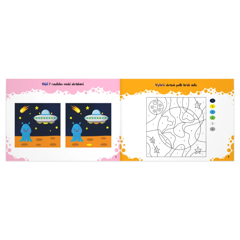 Vesmír – pracovný zošit tvoria úlohy s veselou vesmírnou tematikou. Deti vyznačia mimozemšťanom cestičky k ich lodiam, určia správne smery letov raketoplánov i vesmírnych lodí. Samozrejmosťou je veľa grafomotorických úloh i jednoduchého počítania. S pomocou rodičov sa naučia aj názvy jednotlivých planét v našej slnečnej sústave.