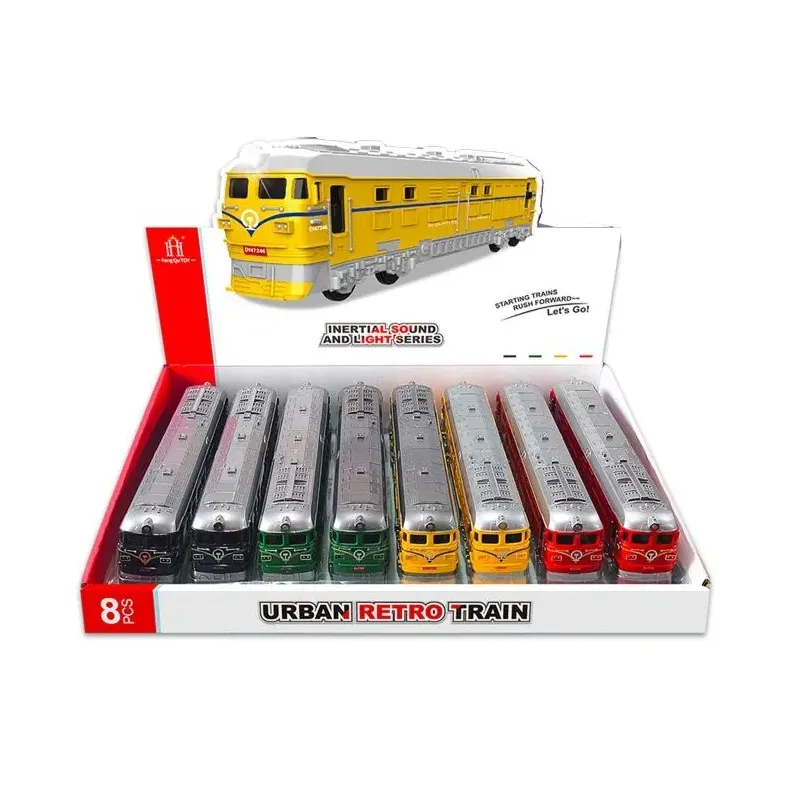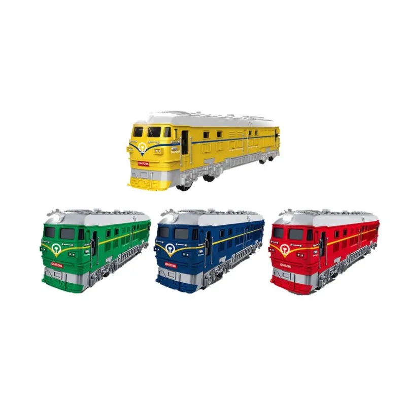 Farebné vláčiky na zotrvačník, ktoré potešia každého malého milovníka železníc. 4 farby: zelená, modrá, červená, žltá