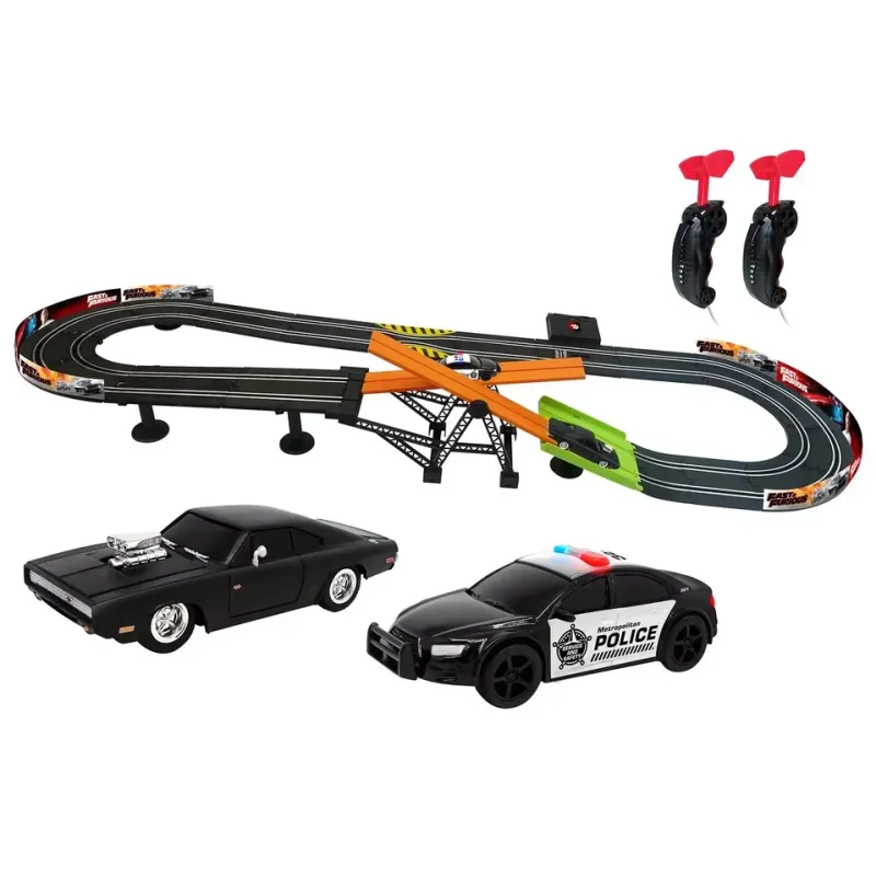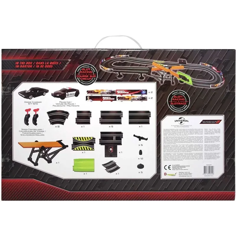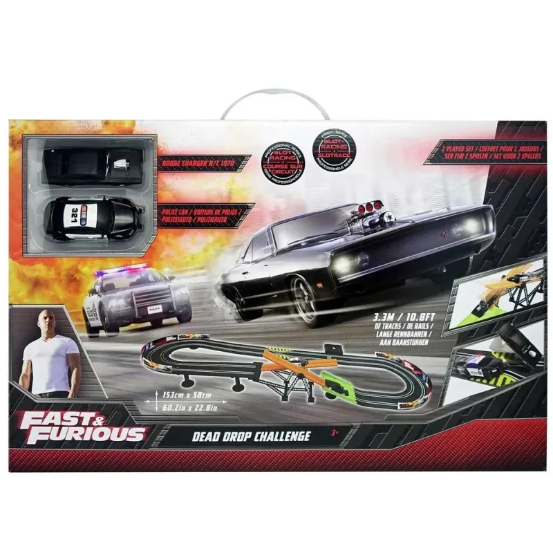 Dĺžka dráhy v rozloženom stave 330 cm (153 x 58 cm)Obsahuje 2 autá 1:43 – ikonický Dom’s Dodge Charger R/T a policajné auto2x ovládač6 x AA batérie pre napájanie dráhy (nie sú súčasťou balenia)Špeciálna funkcia hojdačky a úsek zúženej dráhy