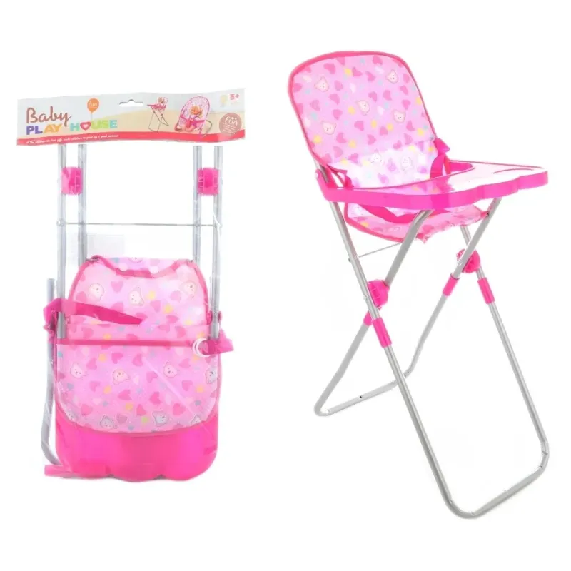 Jedálenská stolička pre bábiku s kovovými nohami.