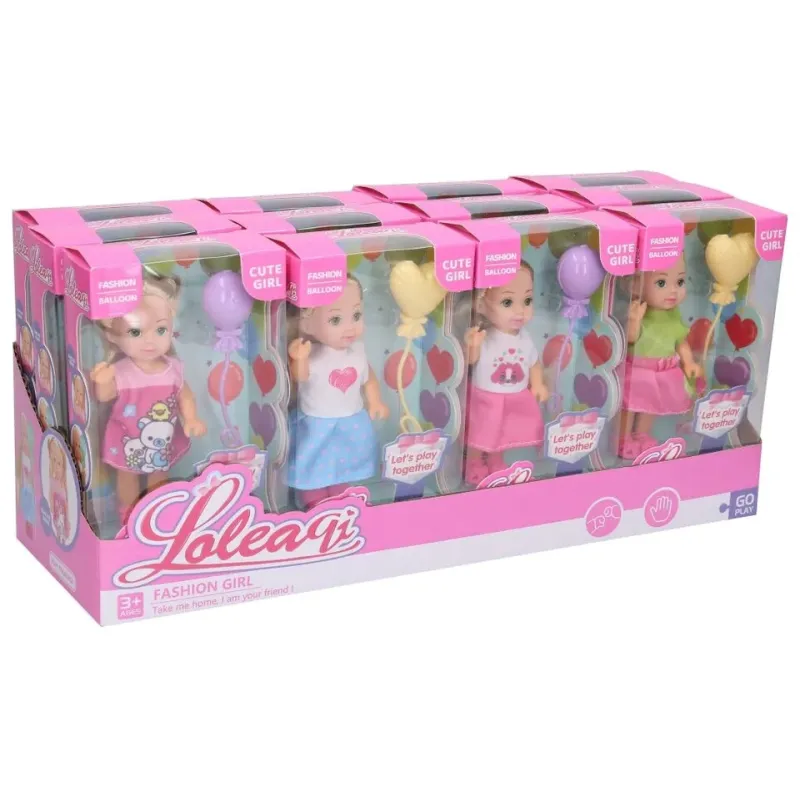 Bábika s dlhými blond vlasmi veľkosti 12 cm.