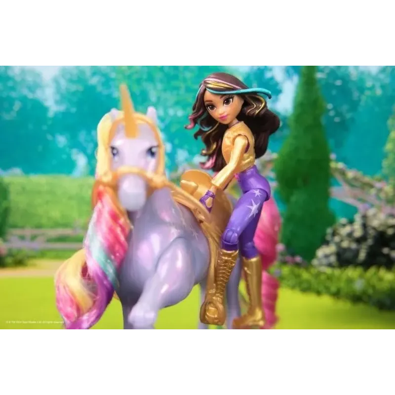Toto duo inšpirované animovaným programom od NETFLIXu a bestsellerovou knižnou sériou, kde priateľstvo drží opraty osudu, oslavuje jedinečné puto medzi jazdcom a jednorožcom.Táto sada podnecuje kúzelnú kreatívnu hru vďaka Polárke, ktorá sa chváli vernými detailmi, mäkkou dúhovou hrivou a chvostom a skutočnými svetelnými efektmi.