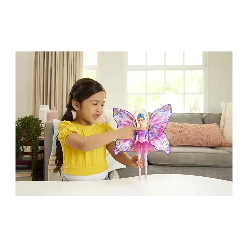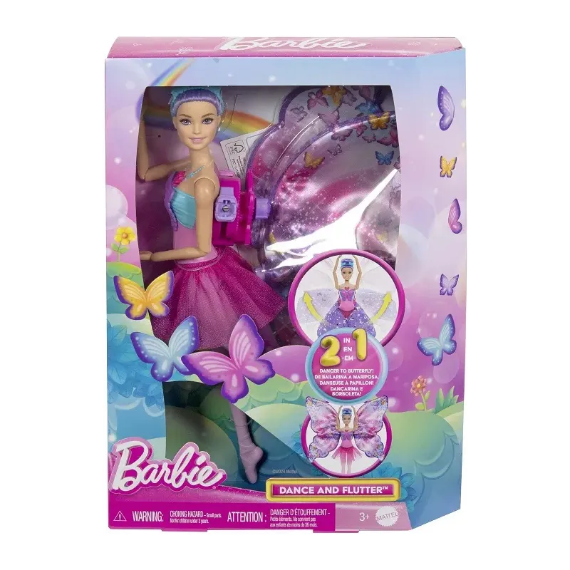 Barbi Tanečnica s motýlími krídlami podnecuje fantáziu a ponúka kúzelnú premenu 2 v 1.