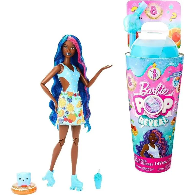 Bábika Barbie Pop Reveal poteší deti tematikou šťavnatého ovocia a novým zážitkom pri rozbaľovaní, kedy pomocou slizu odhalí prekvapenie, medzi ktoré patrí bábika Barbie s vôňou ovocia a kocky ľadu, ktoré pri prasknutí odhalia ďalšie prekvapenie.Set obsahuje hebučké voňavé zvieratko, tematické doplnky a hru so zmenou farieb.