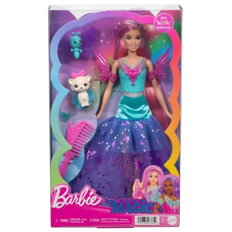 Mattel Barbie a dotyk kúzla bábika Malibu s 2 miláčikmi Bábika Barbie Malibu žiari v šatách inšpirovaných jej kúzelným vzhľadom vo filme Barbie a dotyk kúzla!