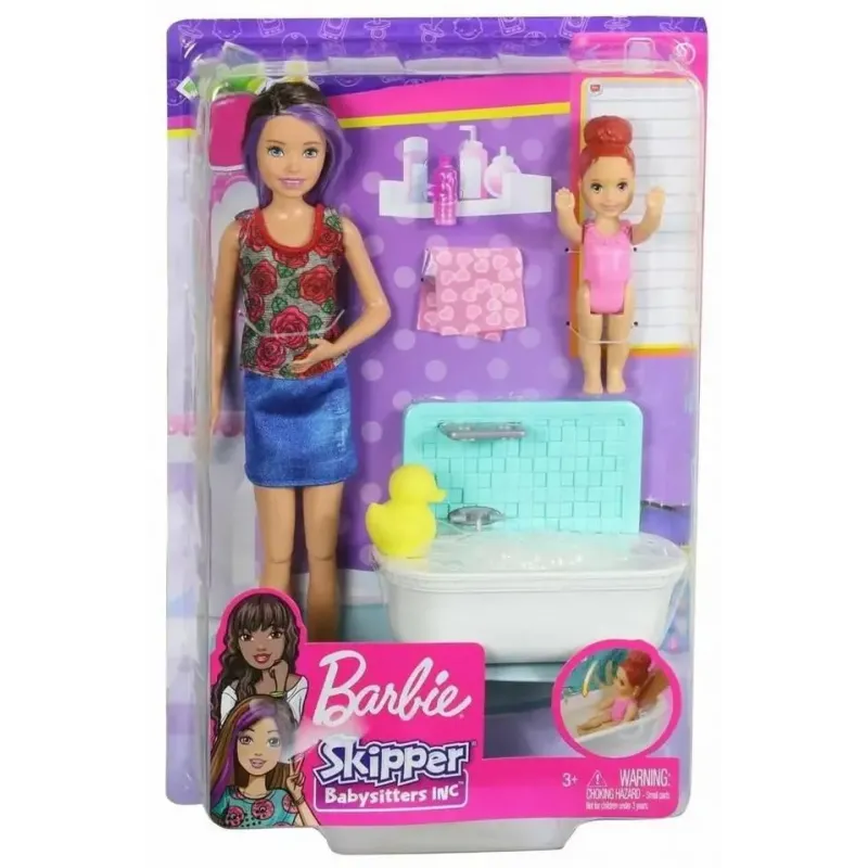 Súčasťou súpravy je bábika Barbie – opatrovateľka, bábika dievčatka a veľa príslušenstva.Bábika je oblečená do ležérneho oblečenia, dieťa je pripravené na kúpanie.Žiarivé farby, charakteristický štýl a veselé prvky sú samozrejmosťou a prináša ešte viac zábavy.Výška bábiky: cca 30 cm.Rozmery balenia: 6 × 14 × 33 cm.Vhodné pre deti od 3 rokov.