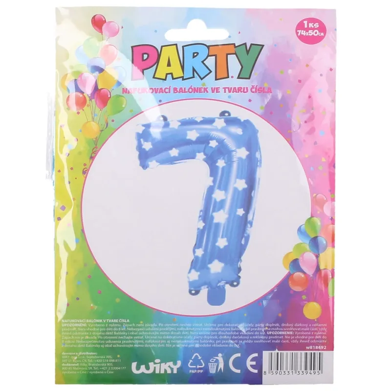 Vhodný na dekoratívne účely, ako párty doplnok alebo drobný darčekový a reklamný predmet. veľkosť balóna: 74 x 50 cmobsah balenia 1 ksmodrý s hviezdami, číslo 7
