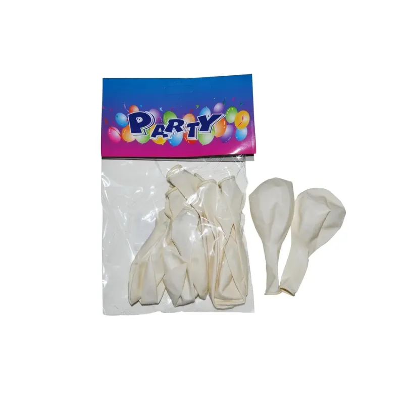 Balenie bielych nafukovacích balónikov, ktoré spestria každú narodeninovú oslavu, karneval alebo párty.