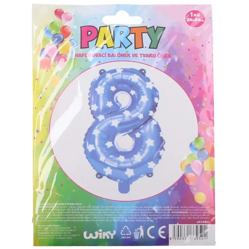 Vhodný na dekoratívne účely, ako párty doplnok alebo drobný darčekový a reklamný predmet. veľkosť balóna: 84 x 54 cmobsah balenia 1 ksmodrý s hviezdami, číslo 8
