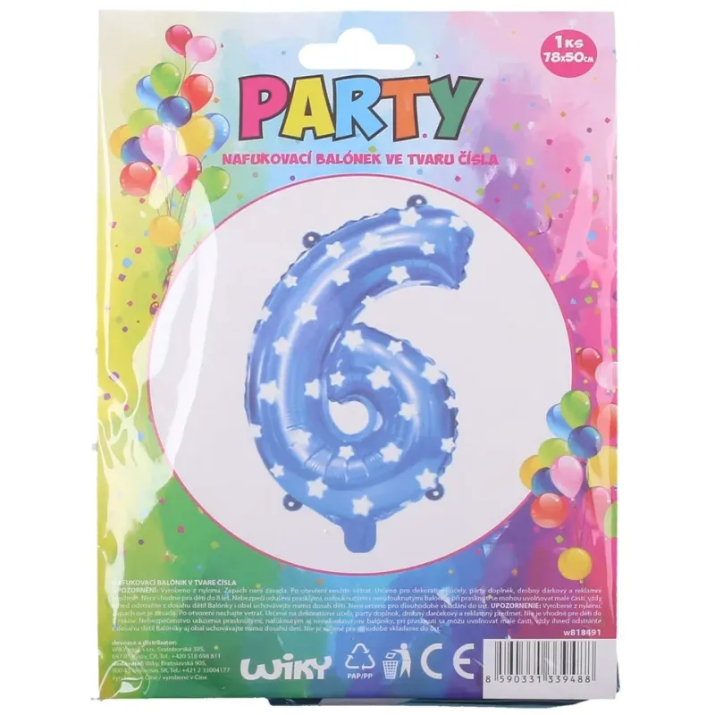 Vhodný na dekoratívne účely, ako párty doplnok alebo drobný darčekový a reklamný predmet. veľkosť balóna: 78 x 50 cmobsah balenia 1 ksmodrý s hviezdami, číslo 6