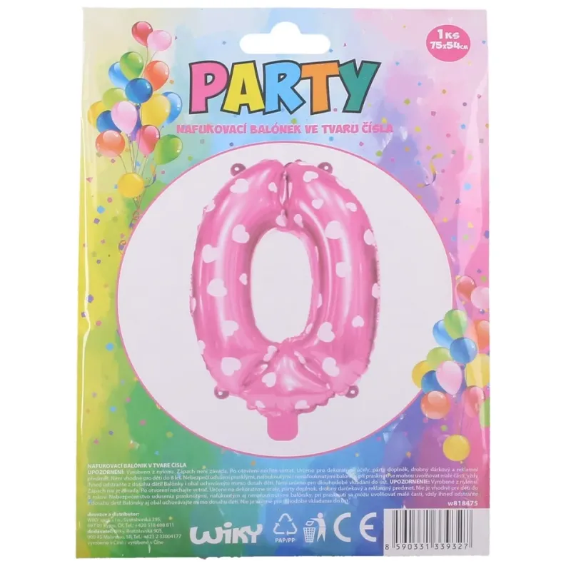 Vhodný na dekoratívne účely, ako párty doplnok alebo drobný darčekový a reklamný predmet. veľkosť balóna: 74 x 50 cmobsah balenia 1 ksružový so srdiečkami, číslo 0