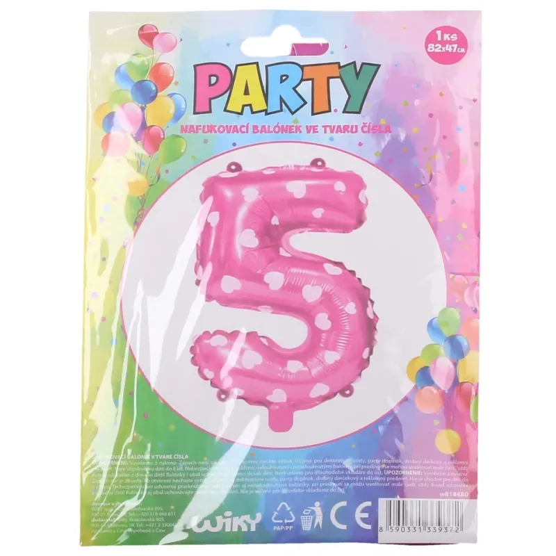 Vhodný na dekoratívne účely, ako párty doplnok alebo drobný darčekový a reklamný predmet. veľkosť balóna: 82 x 47 cmobsah balenia 1 ksružový so srdiečkami, číslo 5