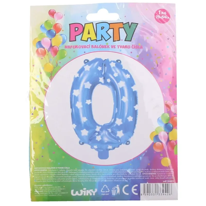 Vhodný na dekoratívne účely, ako párty doplnok alebo drobný darčekový a reklamný predmet. veľkosť balóna: 75 x 54 cmobsah balenia 1 ksmodrý s hviezdami, číslo 0