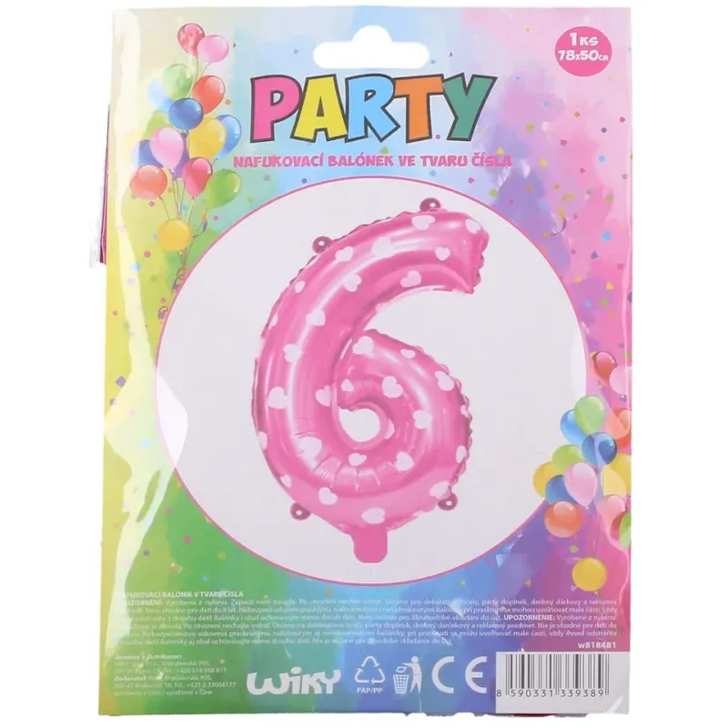 Vhodný na dekoratívne účely, ako párty doplnok alebo drobný darčekový a reklamný predmet. veľkosť balóna: 78 x 50 cmobsah balenia 1 ksružový so srdiečkami, číslo 6
