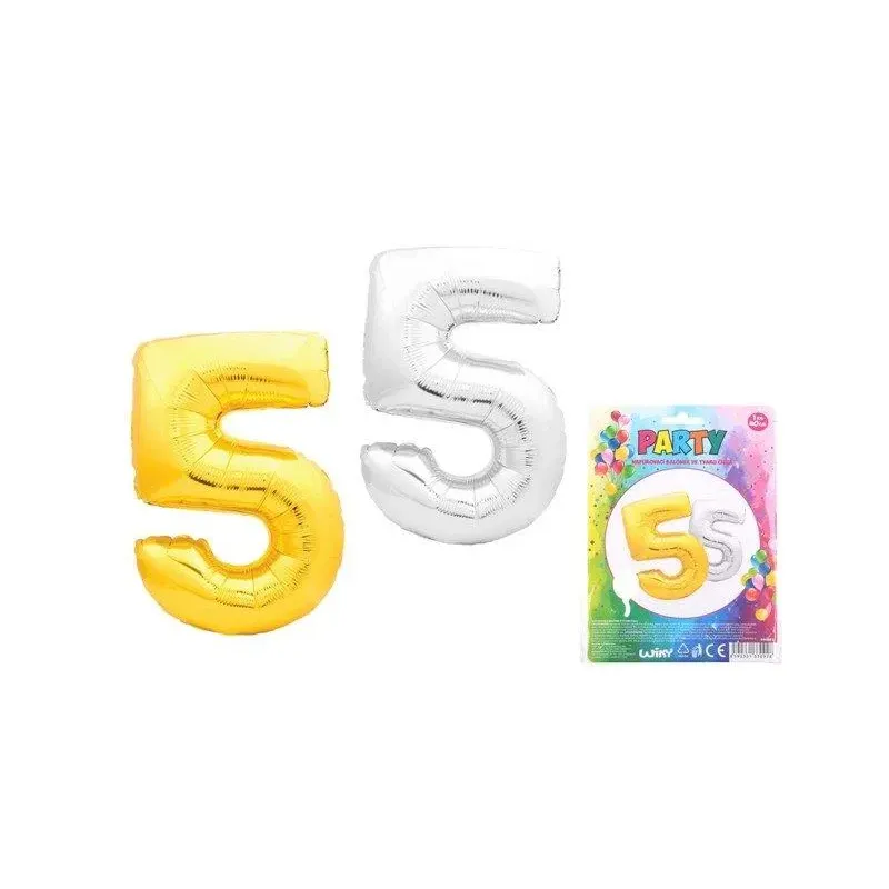 Nafukovací balónik v tvare čísla 5.Vhodný na dekoratívne účely, ako párty doplnok alebo drobný darčekový a reklamný predmet. veľkosť balóna: 40 cmstrieborná, zlatá
