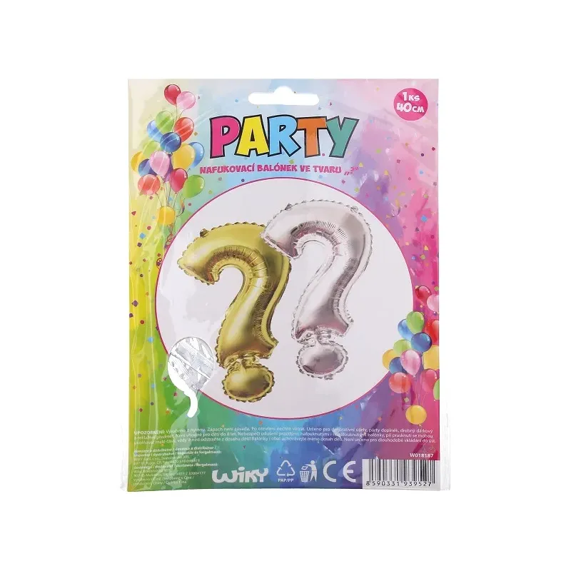 Nafukovací balónik v tvare "?"Nafukovací balónik vhodný na dekoratívne účely, ako párty doplnok alebo drobný darčekový a reklamný predmet. veľkosť balóna: 40 cmzlatá, strieborná