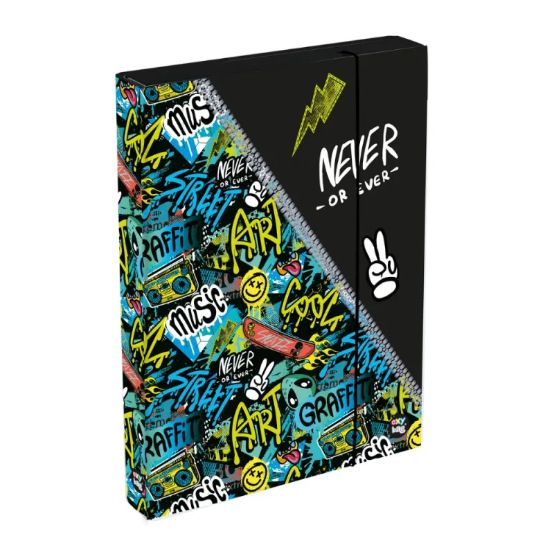 Obľúbený box na zošity JUMBO vo formáte A4. Nevyhnutná súčasť vybavenia každého školáka na uloženie zošitov, papierov a ďalších školských pomôcok. Odolný materiál - lamino, chráni proti poškodeniu. Zatváranie na gumičku. Šírka chrbta 4,5 cm.