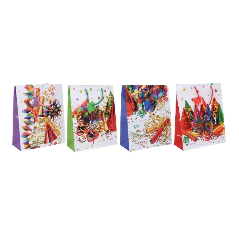Darčeková taška vyrobená z kvalitného tvrdého papiera s rôznymi motívmi, vhodná na jednoduché balenie suvenírov a darčekov.