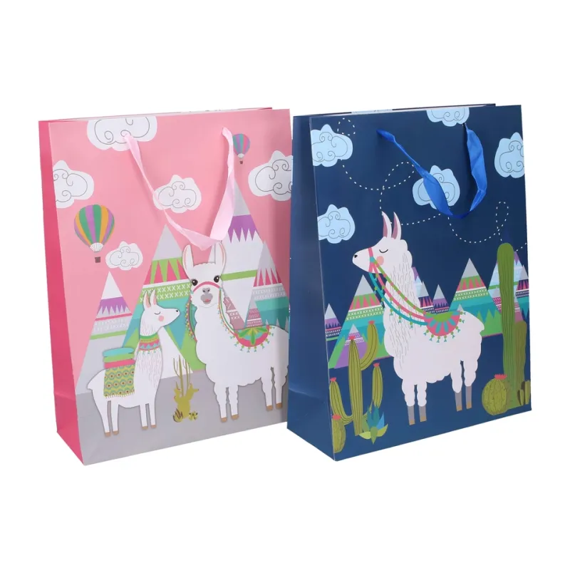 Darčeková taška vyrobená z kvalitného tvrdého papiera s rôznymi motívmi, vhodná na jednoduché balenie suvenírov a darčekov.
