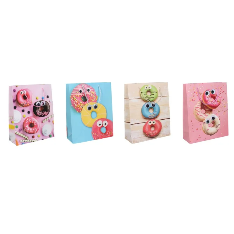 Darčeková taška vyrobená z kvalitného tvrdého papiera s rôznymi motívmi, vhodná na jednoduché balenie suvenírov a darčekov.