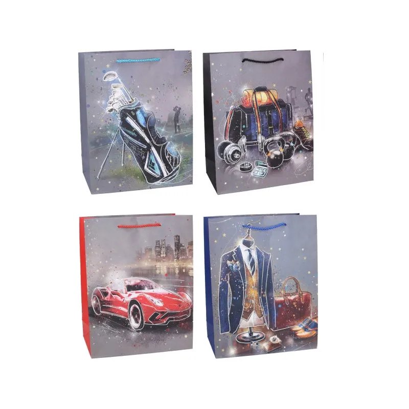 Darčeková taška vyrobená z kvalitného tvrdého papiera s rôznymi motívmi, vhodná na jednoduché balenie suvenírov a darčekov.
