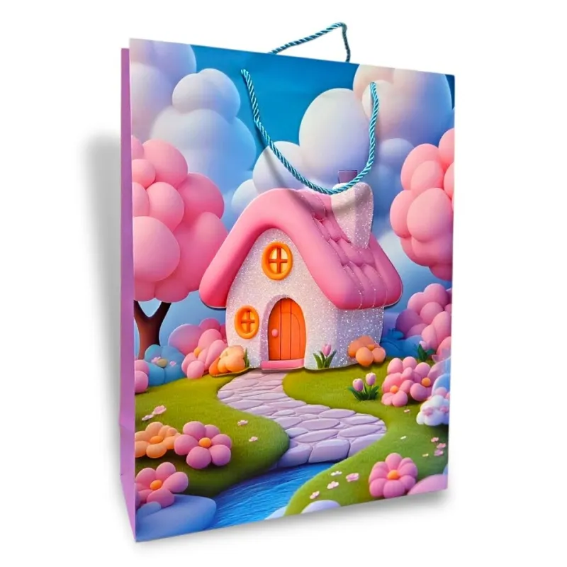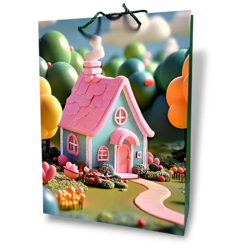Darčeková taška vyrobená z kvalitného tvrdého papiera s rôznymi motívmi, vhodná na jednoduché balenie suvenírov a darčekov.