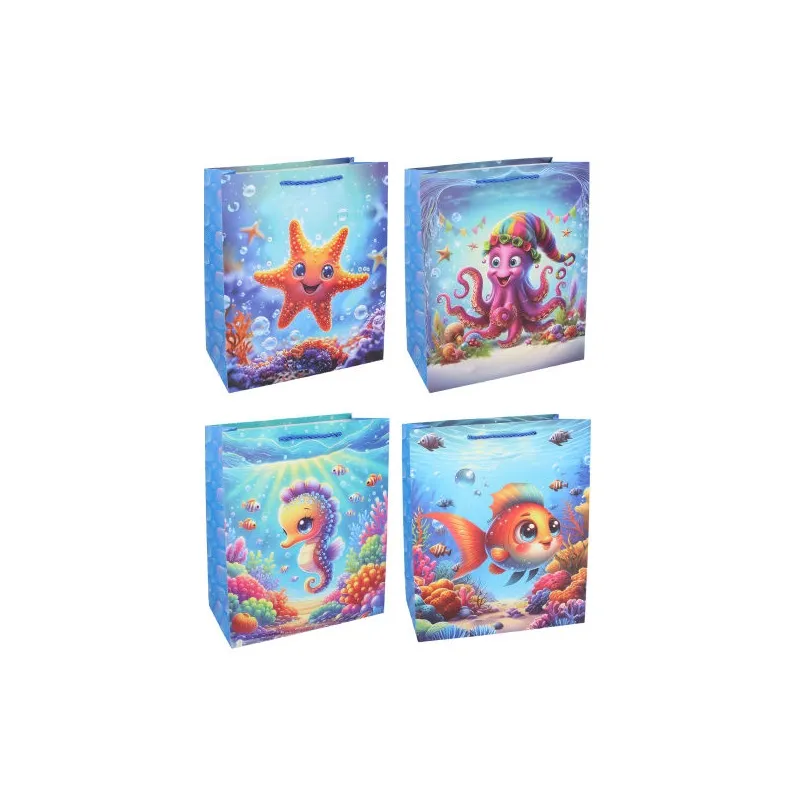 Darčeková taška vyrobená z kvalitného tvrdého papiera s rôznymi motívmi, vhodná na jednoduché balenie suvenírov a darčekov.