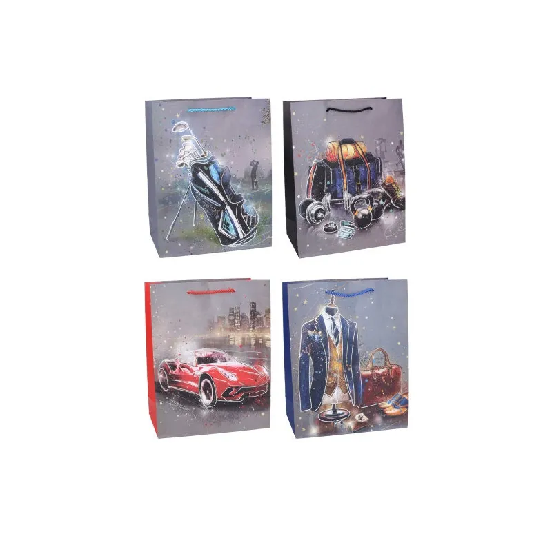 Darčeková taška vyrobená z kvalitného tvrdého papiera s rôznymi motívmi, vhodná na jednoduché balenie suvenírov a darčekov.