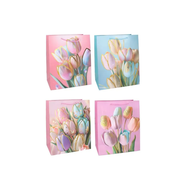 Darčeková taška vyrobená z kvalitného tvrdého papiera s rôznymi motívmi, vhodná na jednoduché balenie suvenírov a darčekov.