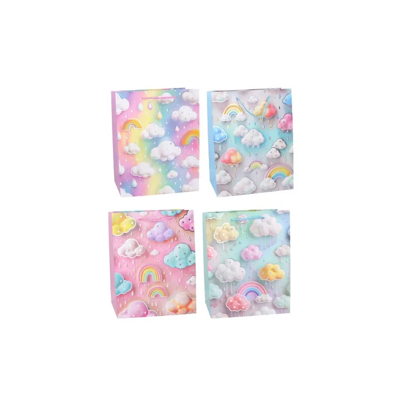 Darčeková taška vyrobená z kvalitného tvrdého papiera s rôznymi motívmi, vhodná na jednoduché balenie suvenírov a darčekov.