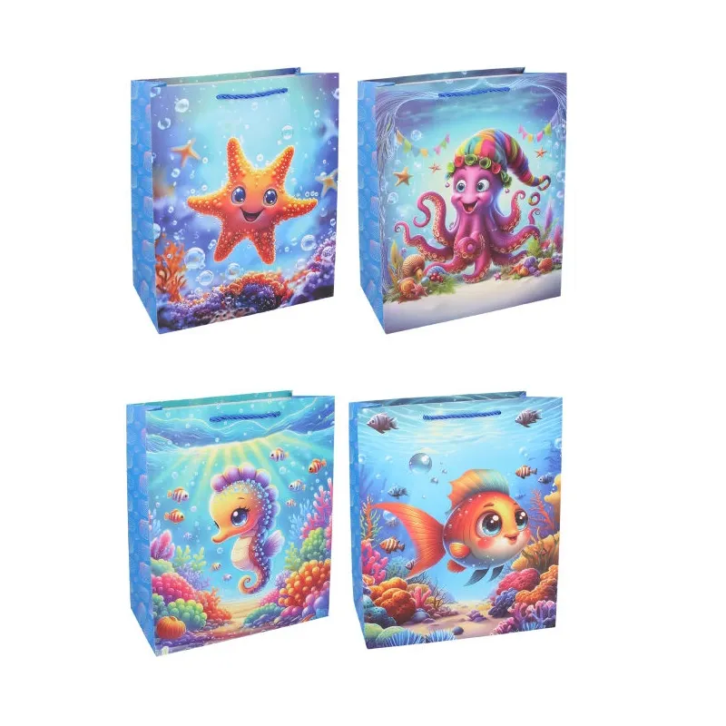 Darčeková taška vyrobená z kvalitného tvrdého papiera s rôznymi motívmi, vhodná na jednoduché balenie suvenírov a darčekov.
