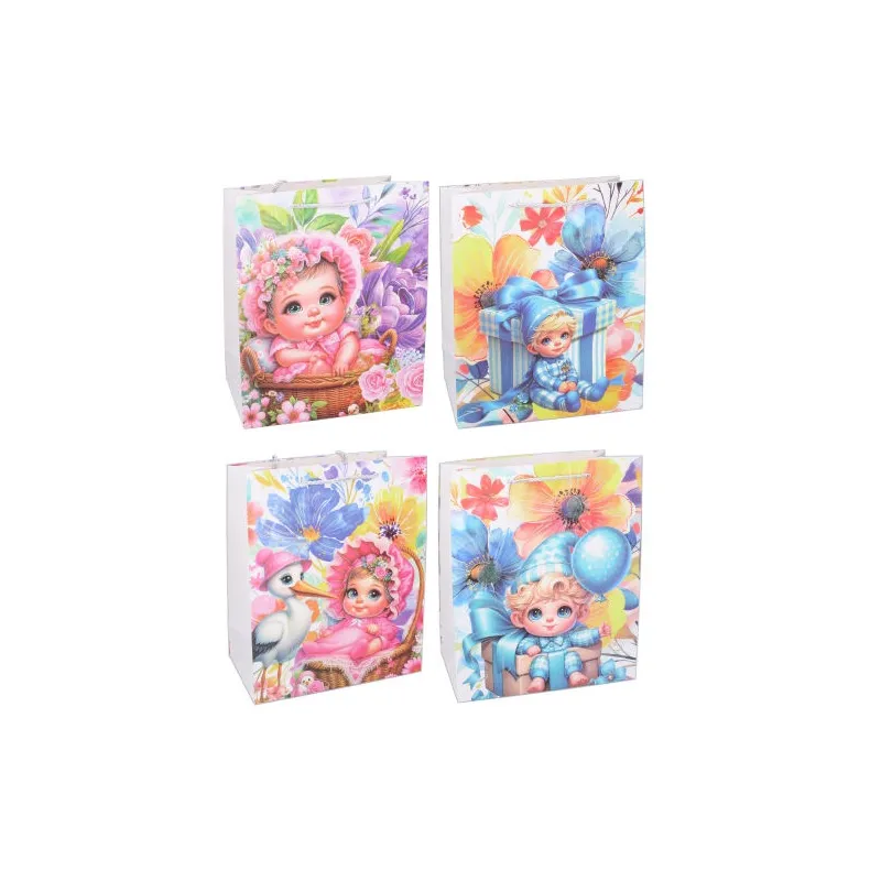 Darčeková taška vyrobená z kvalitného tvrdého papiera s rôznymi motívmi, vhodná na jednoduché balenie suvenírov a darčekov.