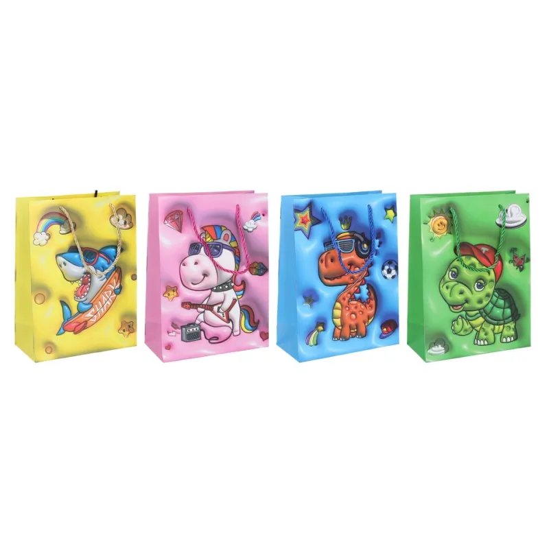 Darčeková taška Darčeková taška vyrobená z kvalitného tvrdého papiera s rôznymi motívmi, vhodná na jednoduché balenie suvenírov a darčekov.