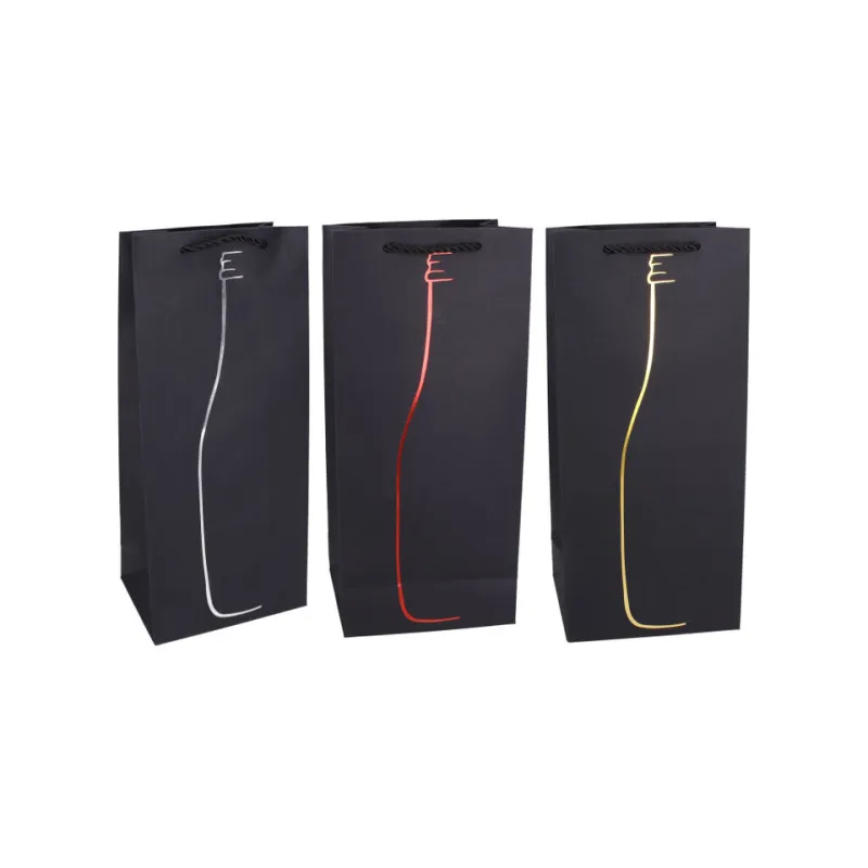 Darčeková taška vyrobená z kvalitného tvrdého papiera s rôznymi motívmi, vhodná na jednoduché balenie fliaš, vína alebo iných suvenírov a darčekov.Rozmery: 17 x 9 x 35 cm