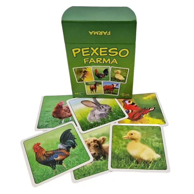 Pexeso obsahuje 32 dvojíc s rovnakými obrázkami, hra je určená pre 2-4 hráčov.