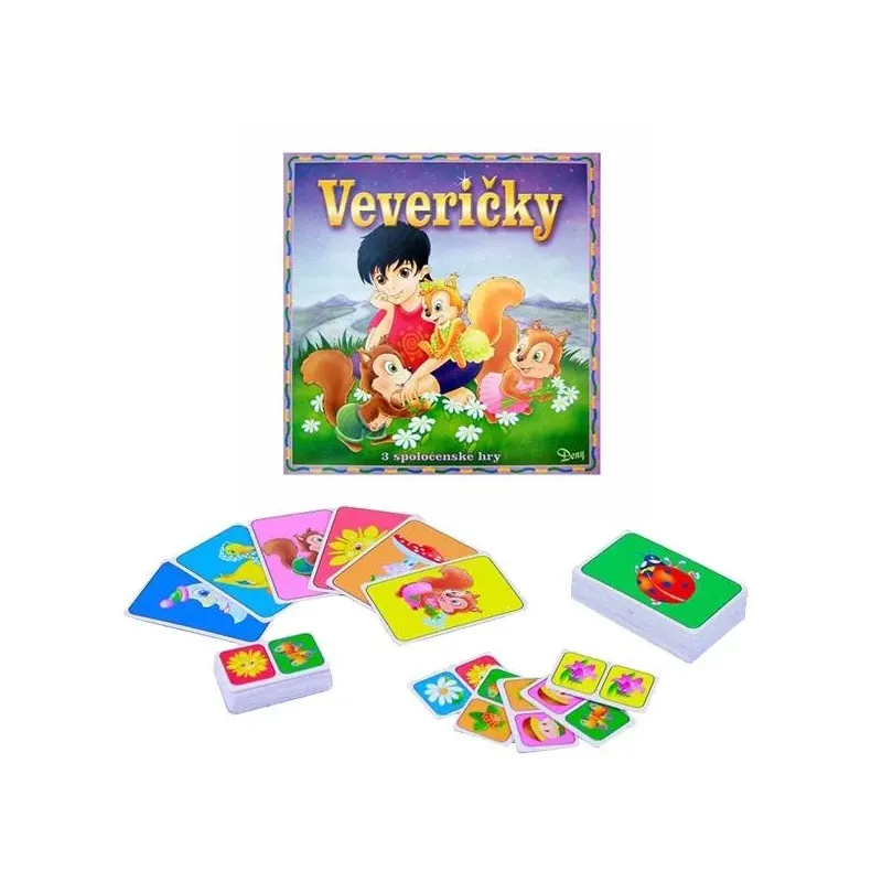 Súbor troch klasických spoločenských hier - pexeso, domino, čierny peter.