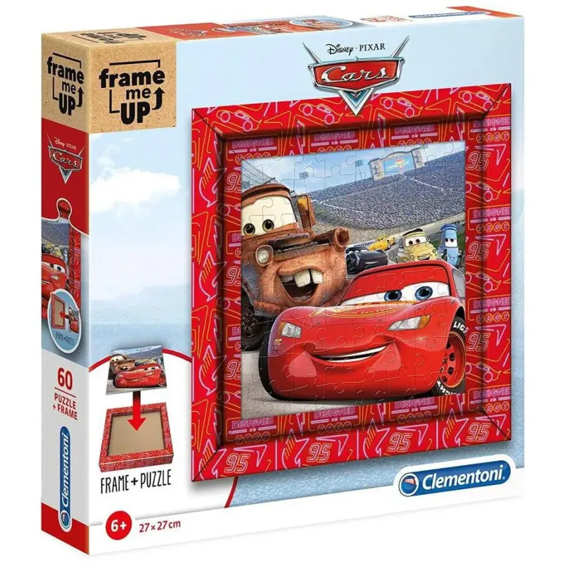Puzzle Clementoni s rámom 60 ks Cars60-dielny puzzle Clementoni s rámom je skutočne špeciálna edícia, pretože v krabičke je okrem puzzle aj skladací rám z obrázka, do ktorého môžete ihneď vložiť hotové dielo.