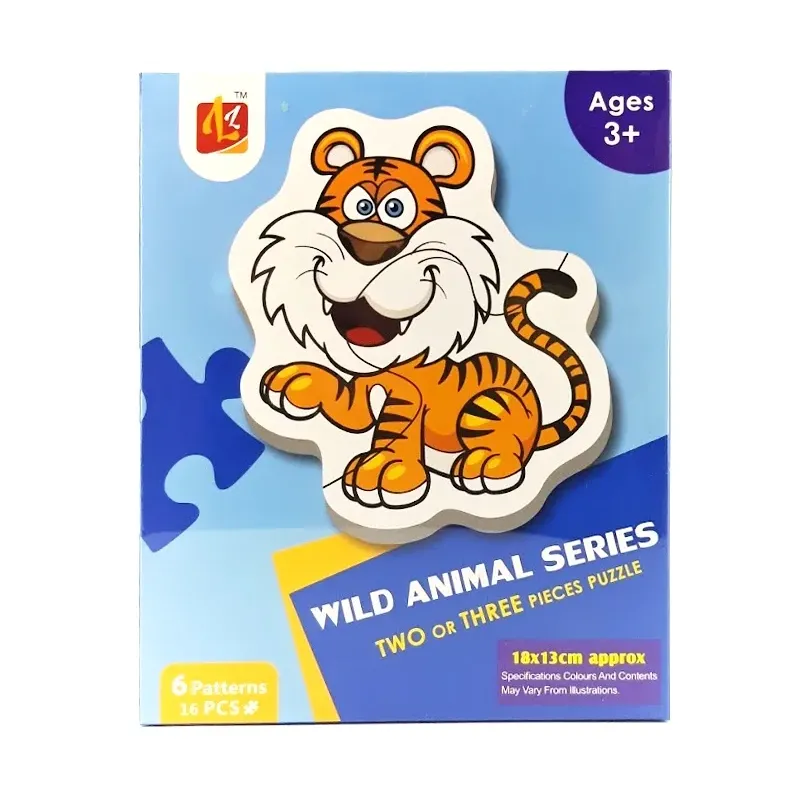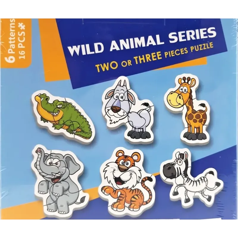 Detské puzzle, 16-dielikov na vyskladanie 6 obrázkov farebných zvieratiek.