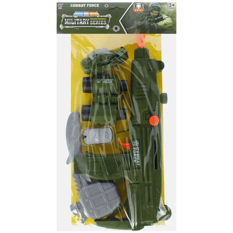 Vojenská sada Vojenská sada obsahuje: pušku, granát, ďalekohľad, termosku na vodu, odznak, nôž.