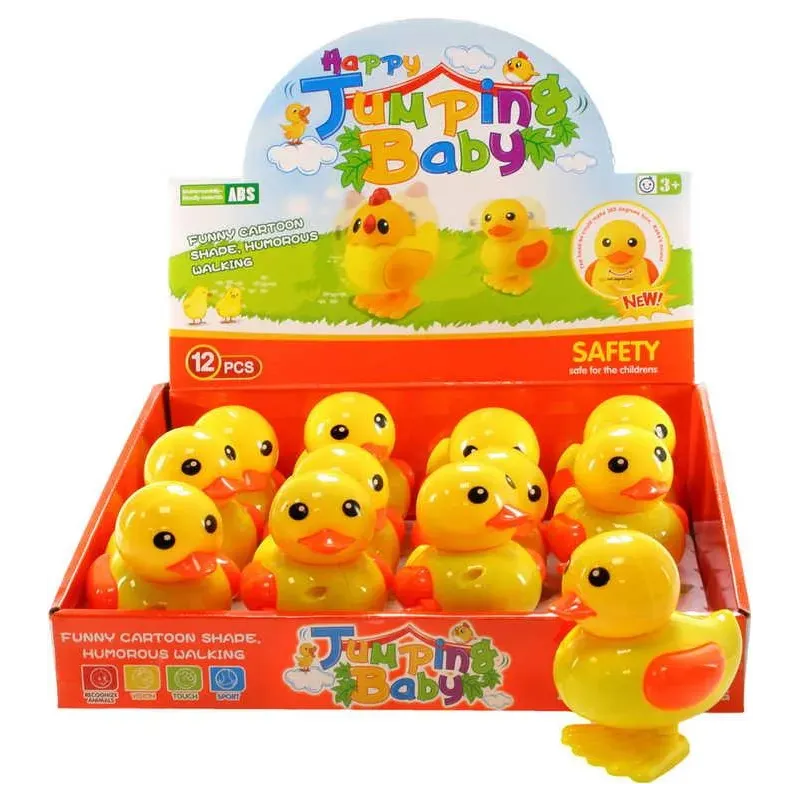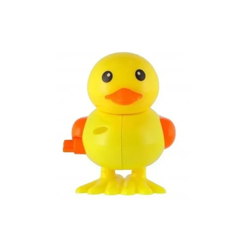 Žltá plastová kačička po natiahnutí kľúčom poskakuje.