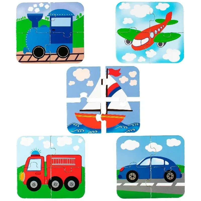 Zabavte sa s deťmi pri jednoduchých 4-dielných puzzle s dopravnými prostriedkami.