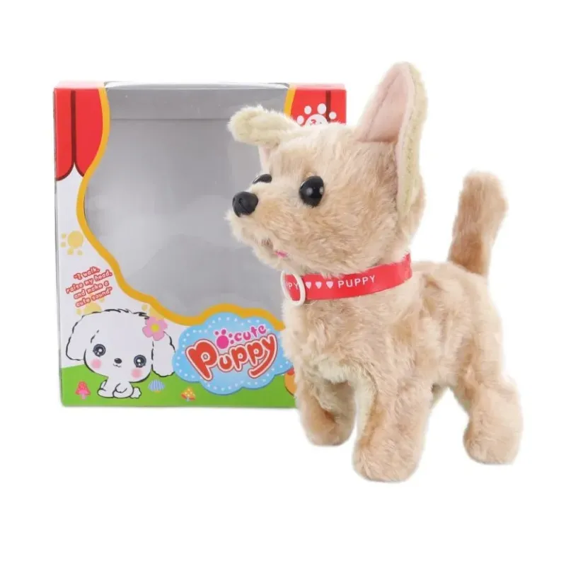 Plyšový hnedý psík chodí a šteká.
