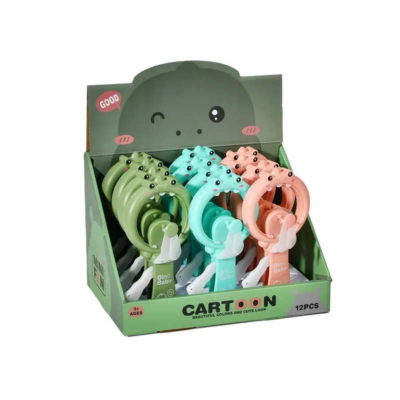 Ručný ventilátor s motívom dina sa roztočí pomocou manuálnej páčky.