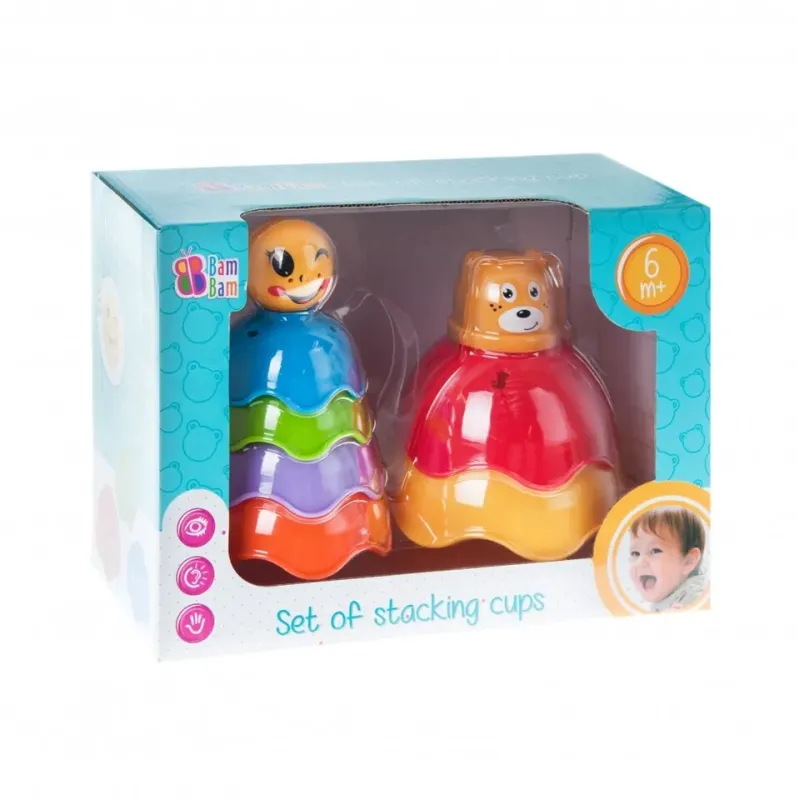 Hračka poskytuje dieťaťu zábavu pri kúpaní, rozvíja schopnosť koncentrácie dieťaťa, stimuluje rozvoj zraku a hmatu, zmyslové farby stimulujú rozvoj zmyslov dieťaťa.Balenie obsahuje 2 ks pyramíd ukončeních hlavou a pripomínajú postavy.
