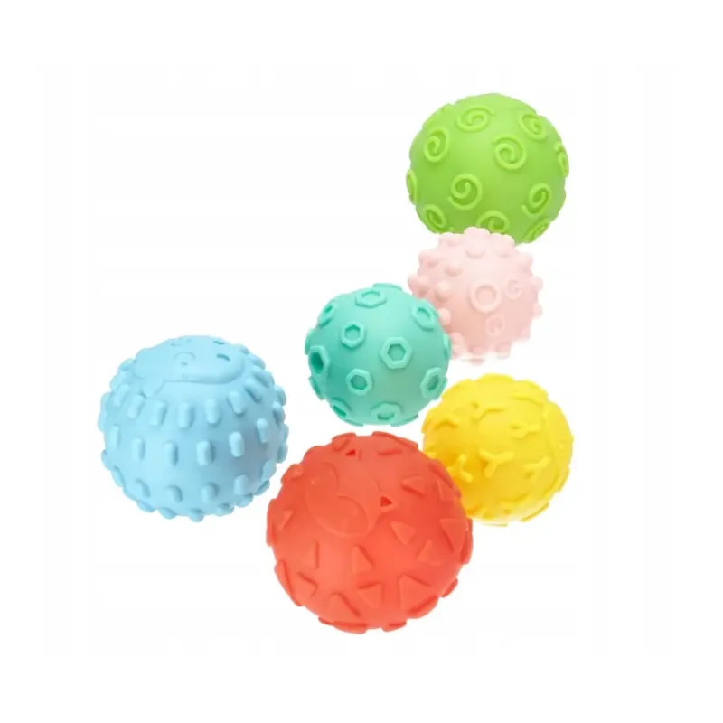 Loptičky rôznych farieb a povrchov stimulujú rozvoj hmatu dieťaťa, jemné motorické zručnosti , koordináciu oko-ruka a poslúžia aj v období prerezávania zúbkov.