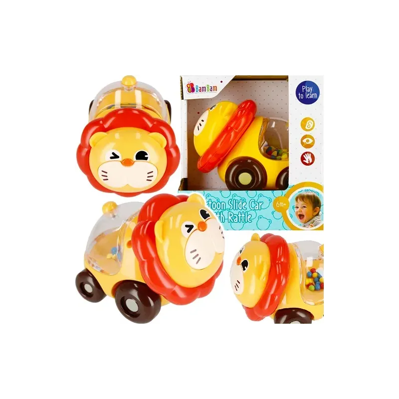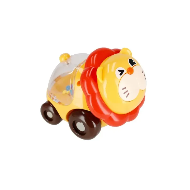 Hrkálka - Autíčko v tvare pôvabného levíka s rotujúcimi guľôčkami v brušku poteší nejedno bábätko.