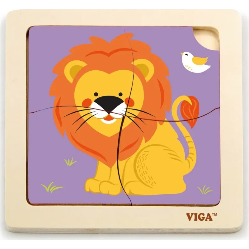 Jednoduchá vkladačka s drevenými dielikmi s motívom leva.