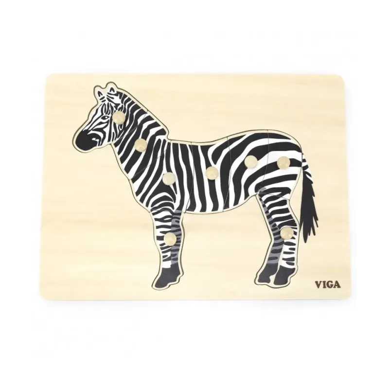 Tento multisenzorický prístup podporuje dôkladnejšie učenie, ktoré je veľmi dôležité pre kognitívny rozvoj. puzzle sa skladajú z 8 prvkov s úchytkami,úlohou dieťaťa je poskladať zebru z dostupných prvkov tak, aby zodpovedal nielen obrázku, ale aj tvaru príslušných prvkov,úchytky uľahčujú malým ručičkám chytanie a držanie dielikov skladačky,zozbierajte celú sériu zvieracích puzzle.Rozmer drevenej dosky cca 30 x 22,5 cm